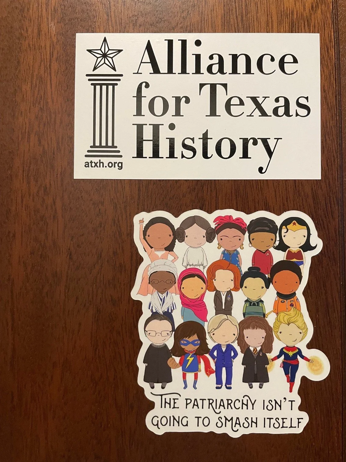 Grace is in charge of communications and technology for the League of Women Voters of the Austin Area, so that laptop gets around. We’re happy Grace found a home for our sticker next to an organization that has helped make some history of its own.